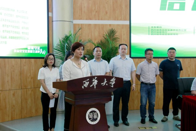 四川省委教育工委委员、教育厅党组成员、副厅长张澜涛,四川省市场监督管理局党组成员、副局长周传军;校党委书记边慧敏,副校长刘小兵出席本次活动。四川省教育厅、四川省市场监督管理局、四川省食品安全委员会办公室、郫都区市场监督管理局、郫都区教育局相关领导,西华大学相关部门负责人、学校师生代表、企业代表和新闻媒体到场参加。启动仪式由刘小兵主持。