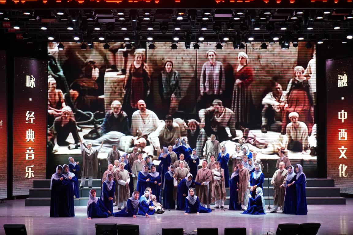 合唱《希伯来奴隶合唱》选自威尔第歌剧《纳布科》,意大利语演唱。旋律辉煌而悲壮,被誉为“意大利的第二国歌”。合唱团成员的打扮使人身临其境,将观众带入了被赶出家园的犹太奴隶渴求自由的场景之中,他们的眼神流露着对自由和家园的向往,声音庄严而神圣,内心压抑而蕴藏着随时可以爆发的力量,那是他们的呐喊、他们的悲鸣!