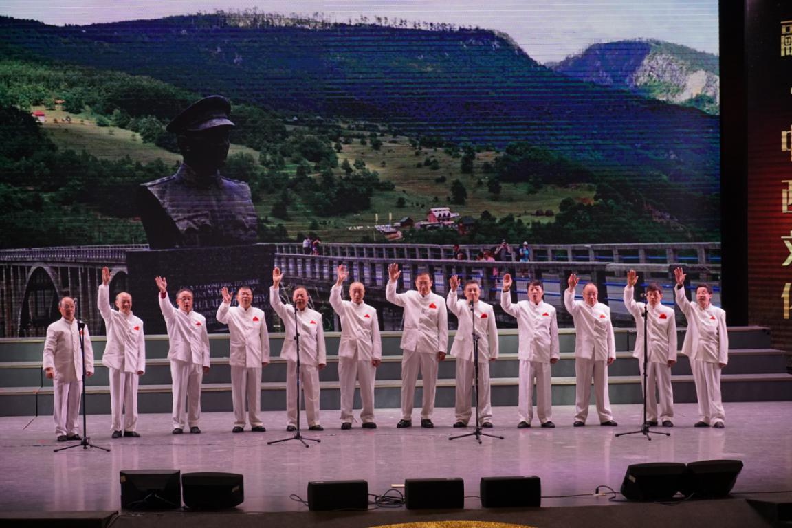 男声小合唱《啊 朋友 再见》选自意大利歌曲,用意大利语演唱。歌曲委婉连绵、曲折优美又豪放壮阔,表现了革命的乐观主义和英雄主义的精神。合唱者高亢的声音为观众呈现出革命战士大无畏的英雄气概。
