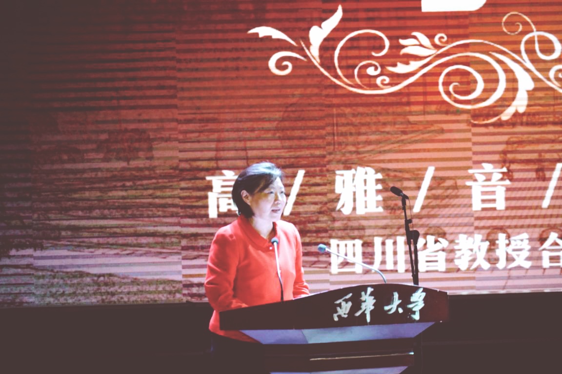 首先,边慧敏书记致辞。她讲到,我国是具有悠久的音乐文化传统,此次四川省教授合唱团以世界经典合唱专场音乐会的形式走进我校,为丰富校园文化生活、提高大学生音乐素养起到了积极作用。