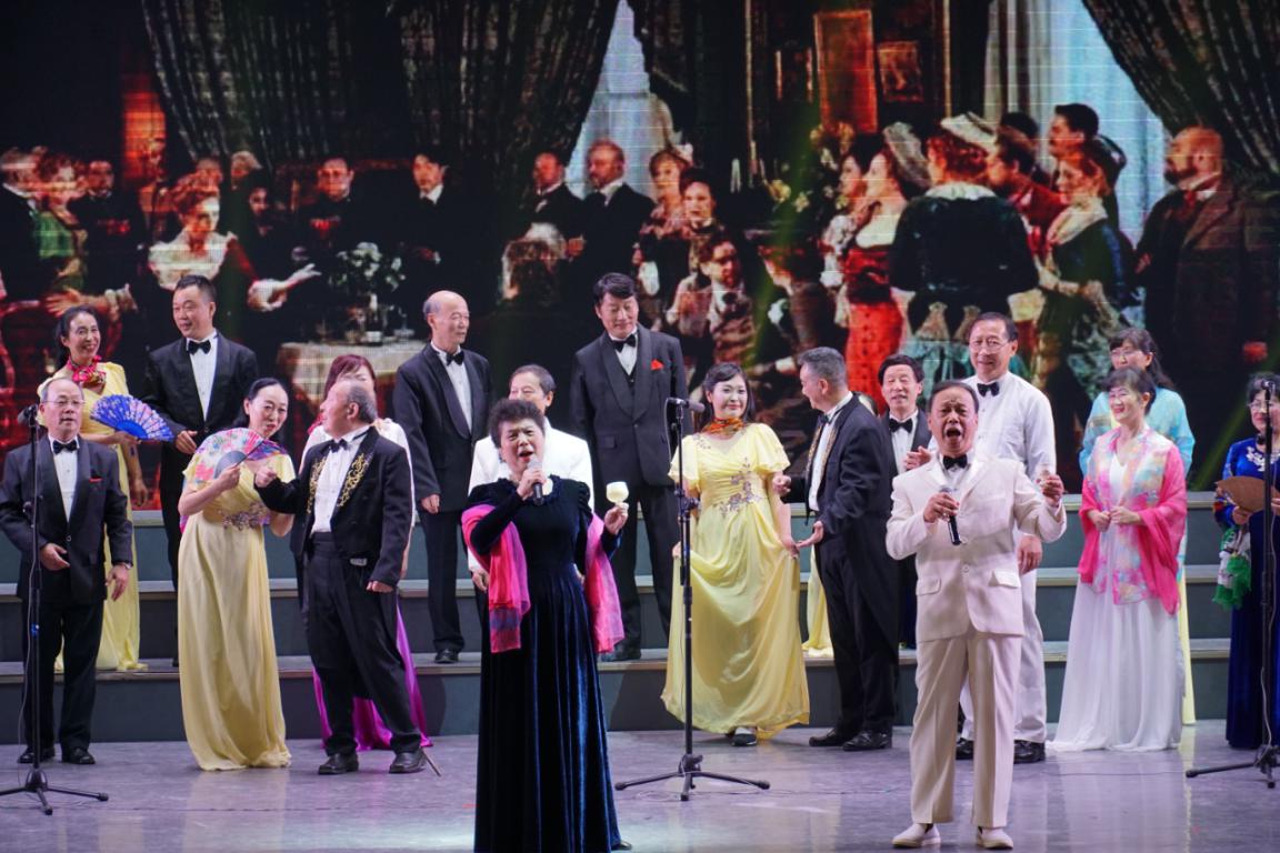 男女声二重奏及合唱《饮酒歌》选自威尔第歌剧《茶花女》,用意大利语演唱。歌曲节奏轻快,合唱者们在舞台上为观众呈现了一场华丽盛大的舞会。