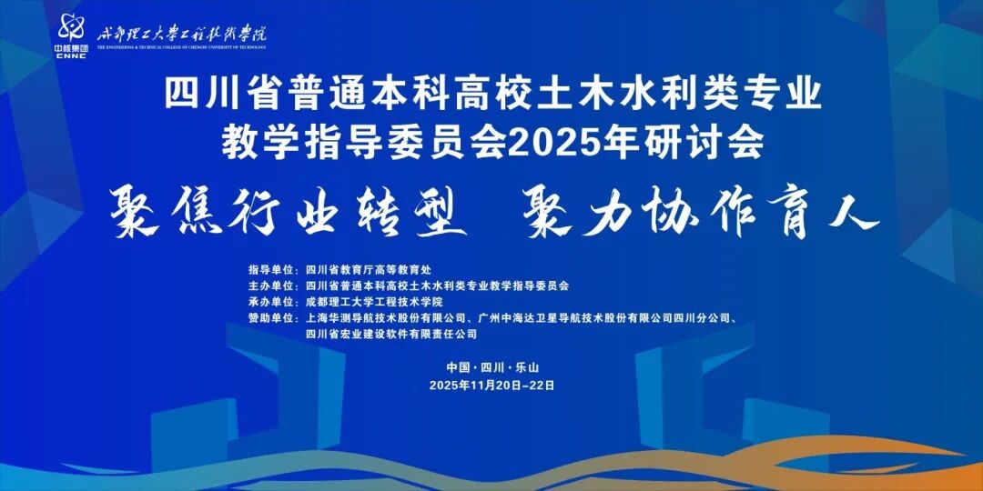 近日,四川省普通本科高校土木水利类专业教学指导委员会2025年研讨会在乐山召开。本次会议由成都理工大学工程技术学院承办,主题为“聚焦行业转型,聚力协作育人”。副校长邵永波带队出席会议,建筑与土木工程学院副院长李化云、道路与桥梁工程系主任张鑫、建筑工程系贾晨副教授一同参会。