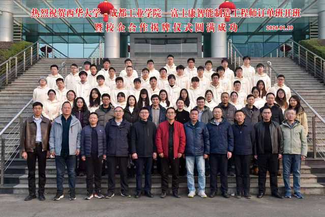 1月10日,西华大学联合成都工业学院与富士康科技集团校企合作揭牌暨“智能制造工程师订单班”开班仪式在郫都校区举行。西华大学党委常委、副校长费凌,成都工业学院党委常委、副校长张勤勇,富士康科技集团成都科技园人力资源处处长张荣等出席活动。