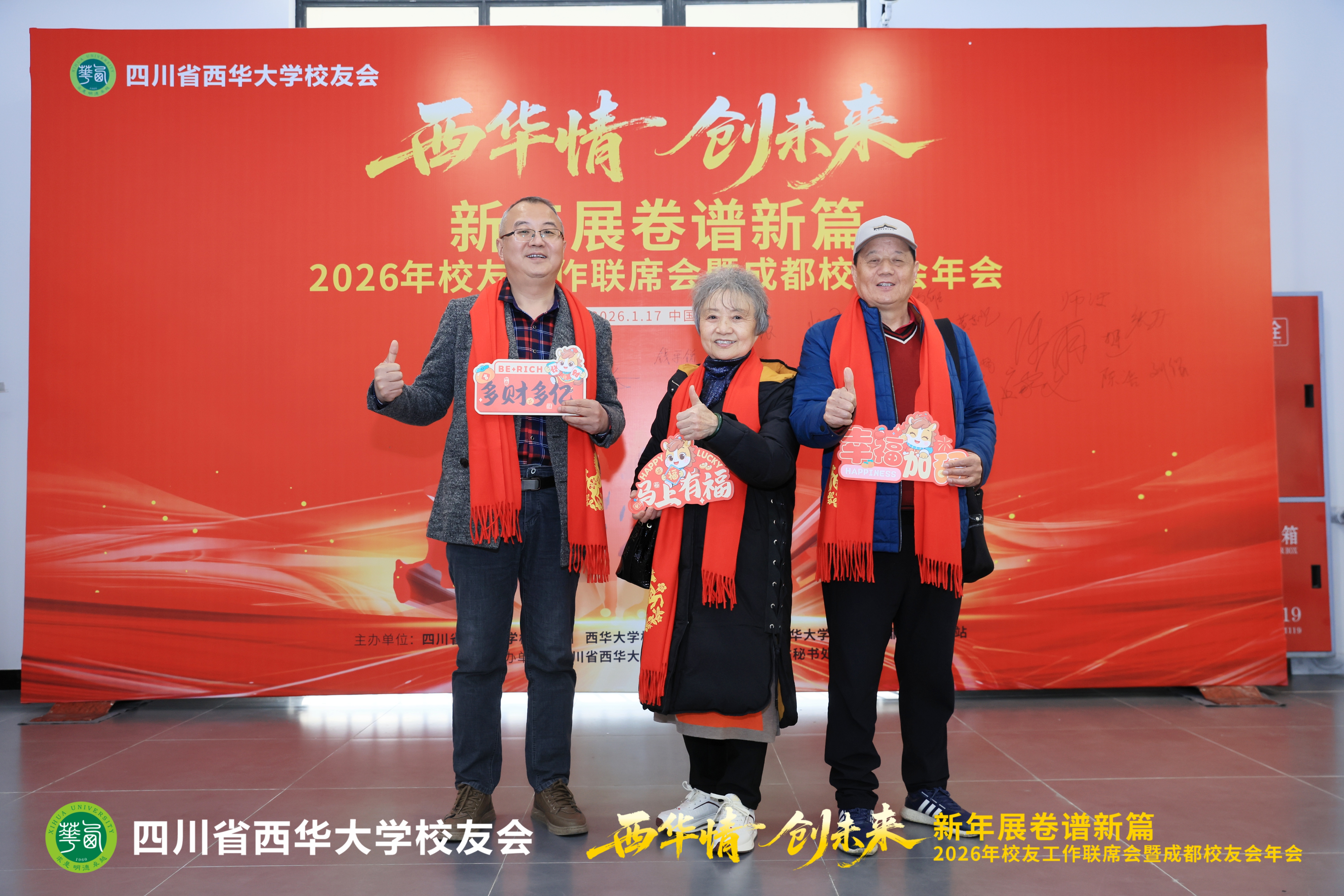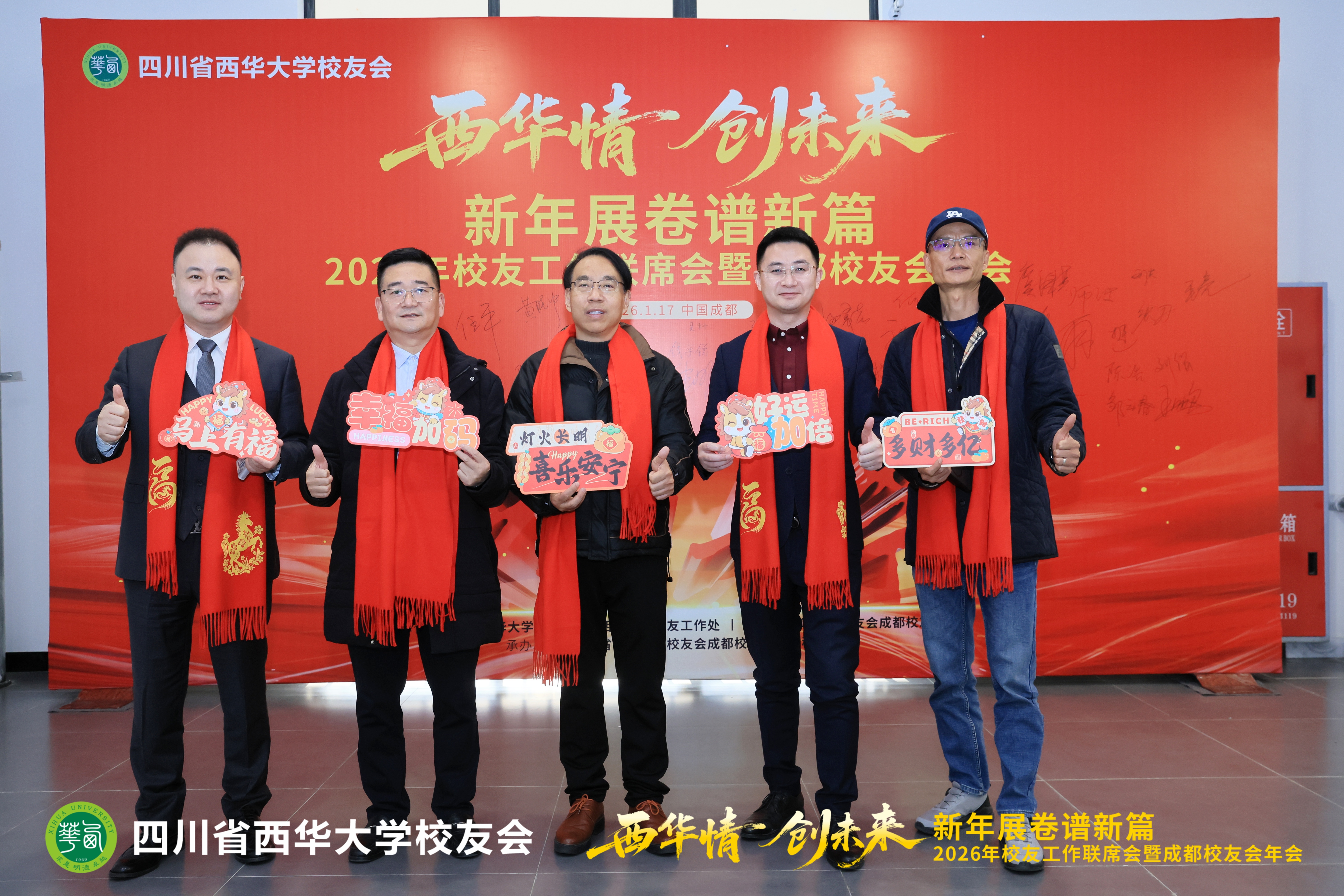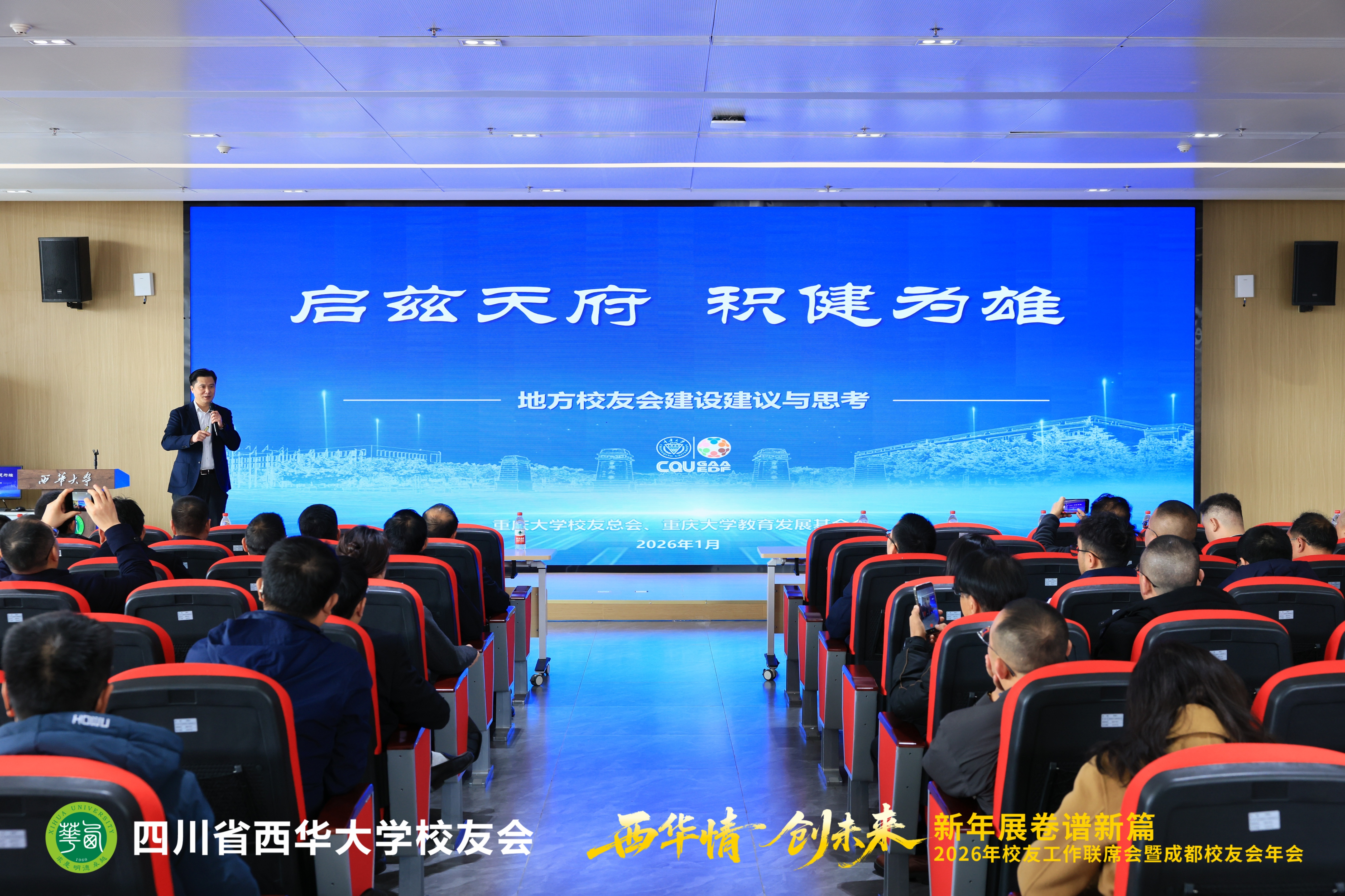 1月17日,2026年校友工作联席会暨成都校友会年会在郫都校区召开。会议以“西华情·创未来——新年展卷谱新篇”为主题,党委书记靳敏,党委副书记郎方年,校内各单位负责人与来自各地的校友代表、嘉宾欢聚一堂,共叙情谊、共商发展。