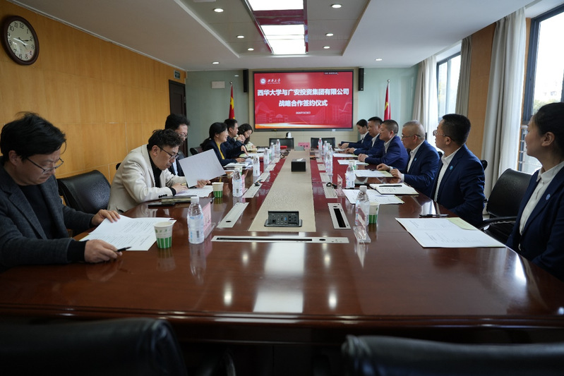 3月9日下午,西华大学与广安投资集团有限公司战略合作协议签约仪式在办公楼312会议室举行。双方围绕校企合作、产教融合等方面展开深入交流,并签署战略合作协议。