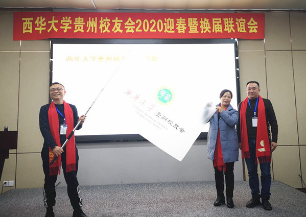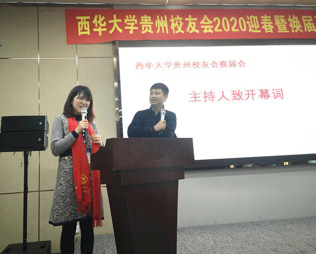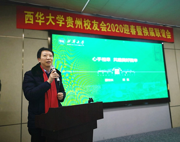 12月28日,西华大学贵州校友会2020迎春暨换届联谊会在贵阳市关山湖区召开。西华大学副校长郑鈜、校友总会办公室主任王丽娟及总会办老师一行与从1979级到2011级的近40名校友欢聚一堂。会议由2004级计科专业萧军校友和2003级艺术设计专业陈玥锟校友主持。