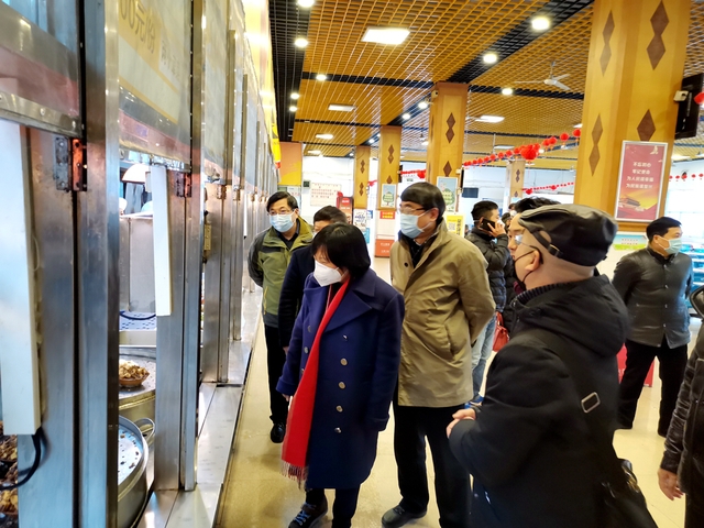 “请领导们先测量一下体温再进入食堂!”来到一食堂,食堂工作人员手持额温仪,正在给前来就餐的师生员工进行体温检测。“你们做得很好,辛苦大家了,正值新春佳节,祝大家新春快乐!”在查看食堂卫生和饭菜准备情况后,边书记向食堂工作人员表达了学校的慰问。