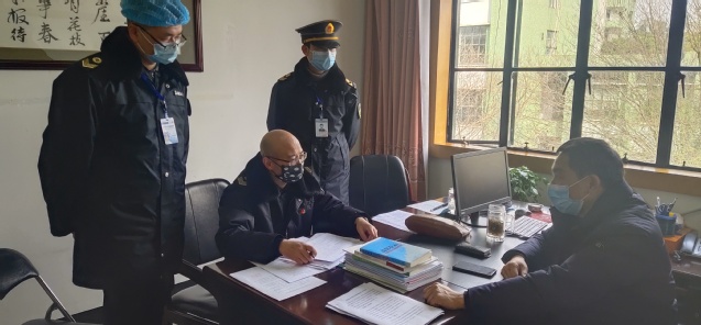 2月21日上午,成都市卫健委卫生计生监管执法支队长朱军、彭州市卫健局职业健康与综合监督科科长丁飞一行4人到我校彭州校区督查新型冠状病毒感染肺炎疫情防控工作。