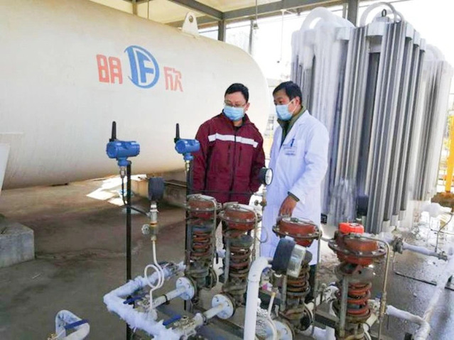 2月15日,在大家的共同努力下,中心供氧改造完成,在原有2台150立方米每小时的气化器的基础上增加了2台400立方米每小时的气化器。同时,张宏伟查阅图纸开通了每层病房的备用管道,绕过管道中的部分节流元件,提高液氧站的医用氧输出压力,从而提高了病房设备的医用氧流量和压力。“经过3天的运行,病房内呼吸机、高流量呼吸湿化治疗仪等设备用氧正常,整个东院病区的供氧问题总算是基本解决了。”