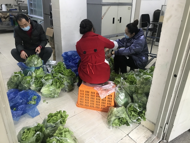 据悉,后勤服务总公司在得知捐赠信息后,迅速安排人员和车辆前往新民场镇净居村接收和搬运捐赠物资,并感谢捐赠人对学校疫情防控工作的大力支持。为了让这批新鲜蔬菜能尽快送到教职员工手中,后勤服务总公司安排直销站员工在快速完成卸货、整理、装袋的同时,派专人积极沟通衔接做好蔬菜发放工作。截至下午6点,约有500余位教职员工领取了爱心蔬菜。