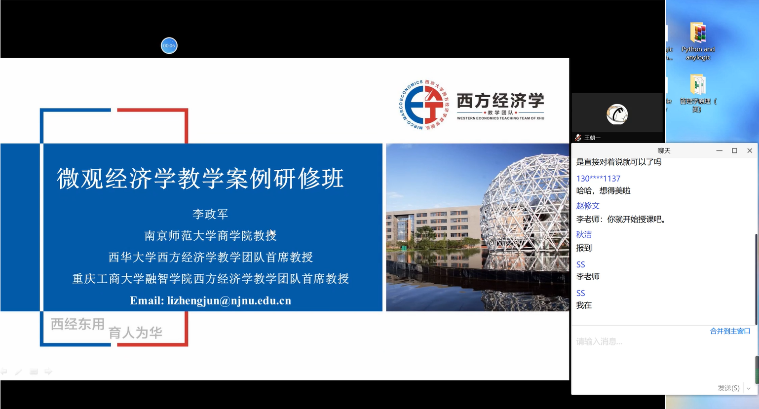研修从上午9:00开始,下午6:00结束。李政军教授首先对研修内容和研修形式进行了总体介绍。本次研修的内容是李政军教授为《微观经济学》课程精选的65个案例,通过教师分享对教学案例的理解、李政军教授点评和教师讨论三者有机结合的形式进行,教学团队成员提前一周熟悉了研修材料。根据西方经济学教学团队工作安排,将通过在线研讨的方式进行4次全天研修,分别在3月7日、3月14日、3月21日、3月28日进行。