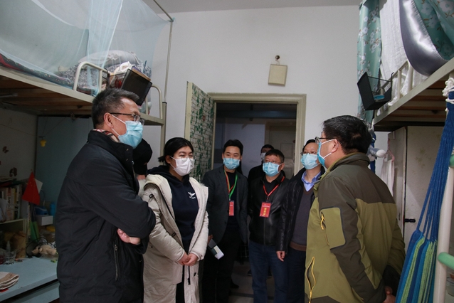 在德馨苑学生宿舍,刘校长一行看望了留校学生。外国语学院2016级英语专业学生路馨宇家在广东,今年寒假准备考研未能返家,刘校长详细询问了她的学习生活情况,关心她在疫情防控期间生活是否便利,有无困难,叮嘱她珍惜时光、抓紧读书,要求相关部门要进一步加强对学生的教育引导,做好对留校学生的生活关照,做实做细教育管理工作。