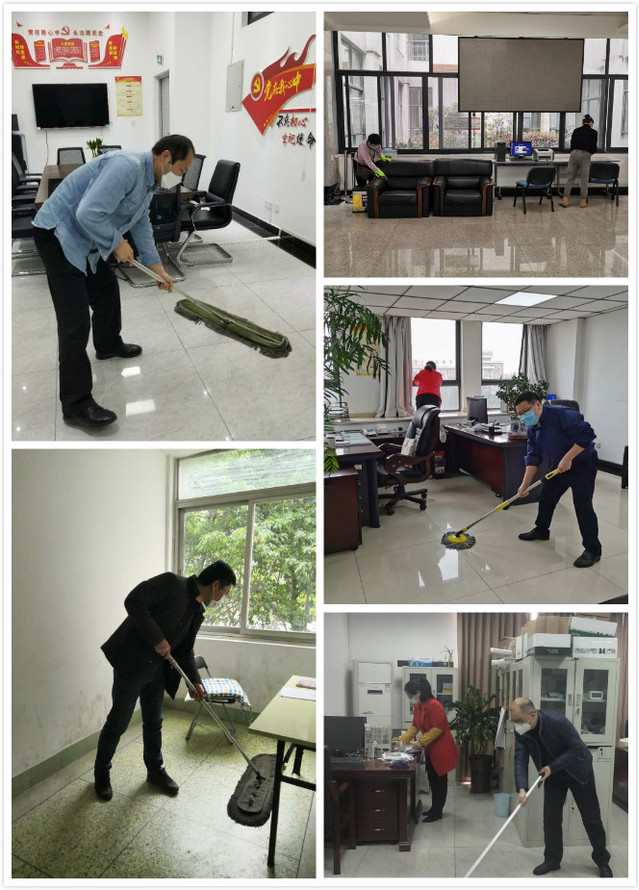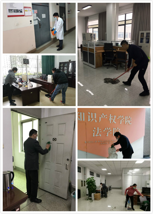 应急学院/社会发展学院根据学校部署,立即成立“校园大扫除活动”领导小组,制定了活动方案。学院师生依次对所属责任办公区域进行了室内清洁、消毒、通风工作,对公共物品及地面、走廊、厕所、电梯、食堂等公共区域进行了清洁消毒,并对所属办公室进行了仔细认真地打扫。