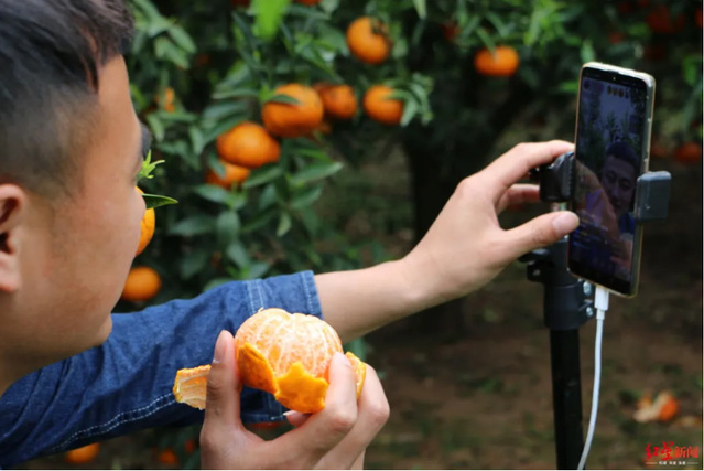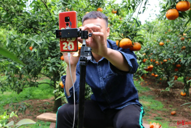 “从早上8点算起,一直直播到下午3点,总共7个小时,不停地说,很多是重复的提问重复的话,从我们刚直播时候的十个人到几百人,再到最多时候的三四千人,我激动惨了。”肖钦仁告诉红星新闻记者,虽然刚直播的时候人很少,但就是坚持聊天,自言自语也要说,慢慢的、不经意间发现人会越来越多。直播工具没有打光的、没有很高端的器材,仅仅只是一根板凳、一个三脚架,还有平时用的手机,后来又多了充电宝。直播地点选在了橘子地里,直播的同时,旁的人从树上采摘,保证网友见到的都是新鲜采摘。