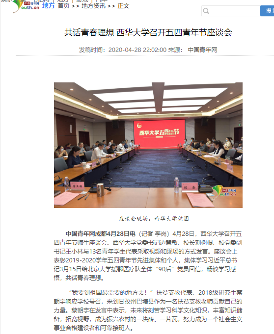 中国青年网:共话青春理想 西华大学召开五四青年节座谈会