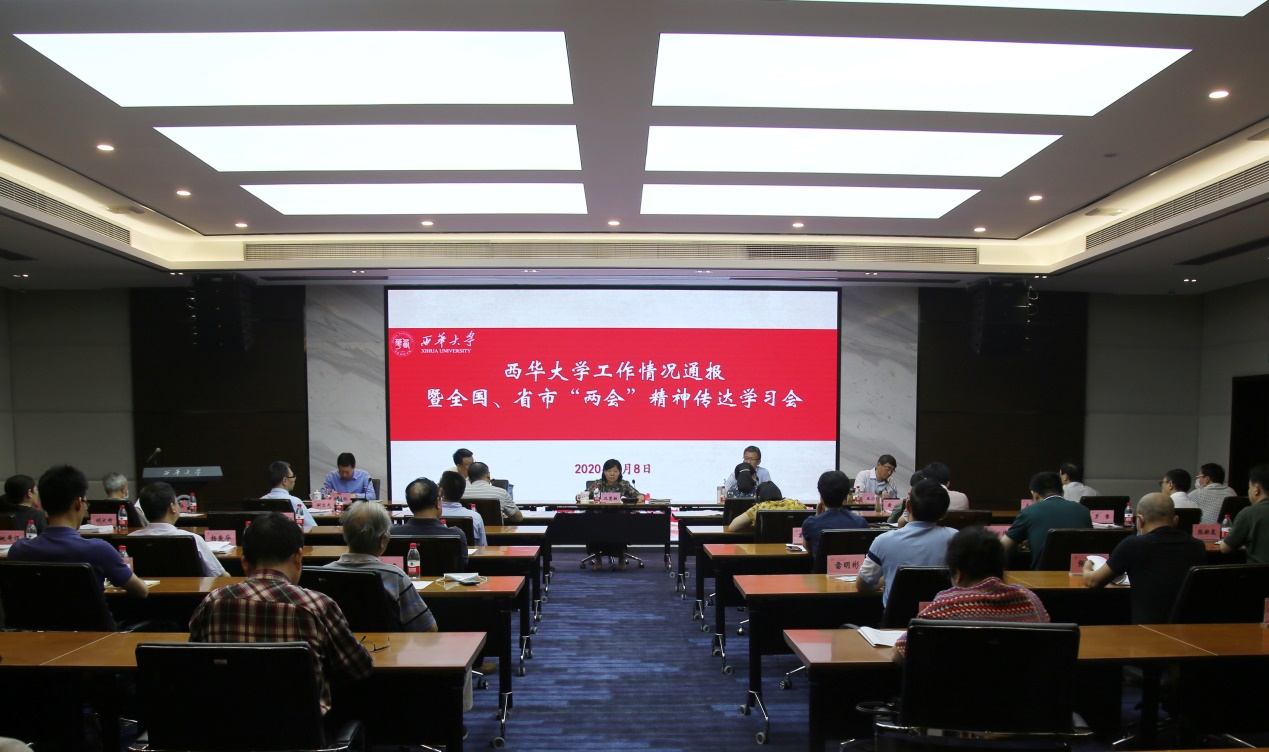 6月8日上午,学校在办公楼101会议室召开了西华大学工作情况通报暨全国、省市“两会”精神传达学习会。校党委书记边慧敏,校长刘树根,校党委副书记王小林,全国人大代表、副校长许州和全国政协委员、副校长郑鈜,学校党委统一战线工作领导小组成员单位主要负责人,各民主党派、统战团体负责人及成员代表,各级人大代表、政协委员、文史馆馆员,归国留学人员代表参加了会议。会议由王小林主持。