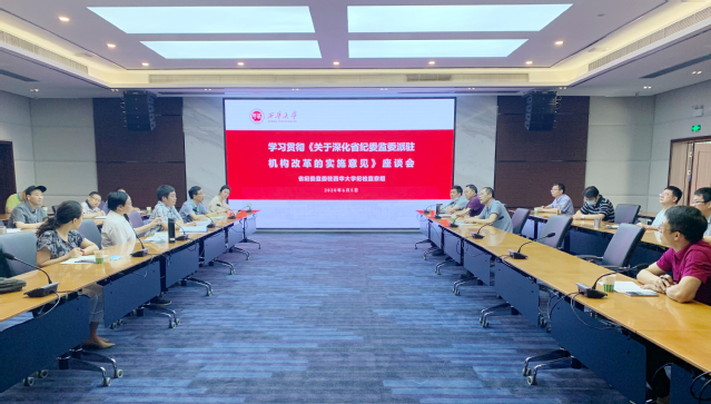 为进一步提高对高校派驻机构改革的认识,统一思想,明确任务,推动落实,6月5日,省纪委监委驻西华大学纪检监察组就学习贯彻省纪委监委深化派驻机构改革部署会及相关文件精神召开座谈会,集中学习深化派驻改革总体思路和基本要求,研究部署下一步工作任务,驻校纪检监察组组长、校党委副书记、纪委书记李传林出席会议并讲话,学校各职能部门主要负责人参加会议。座谈会由驻校纪检监察组副组长、校纪委副书记、纪检监察室主任王一兵主持。