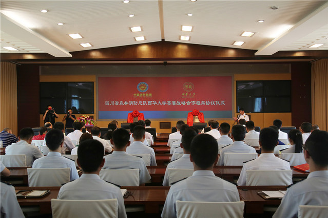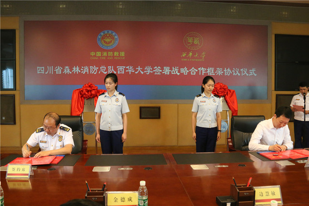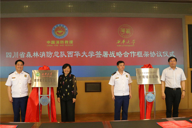 6月10日上午,四川省森林消防总队、西华大学战略合作框架协议签署仪式在四川省森林消防总队举行,双方签署《四川省森林消防总队西华大学战略合作框架协议》,并共同为“四川省森林总队教育培训基地”“西华大学教学实习实践基地”揭牌。四川省森林消防总队党委书记、政治委员金德成,副总队长张宏伟,副政治委员邓斌,政治部主任彭先富,西华大学党委书记边慧敏,副校长王政书、刘小兵、郑鈜出席签署仪式。