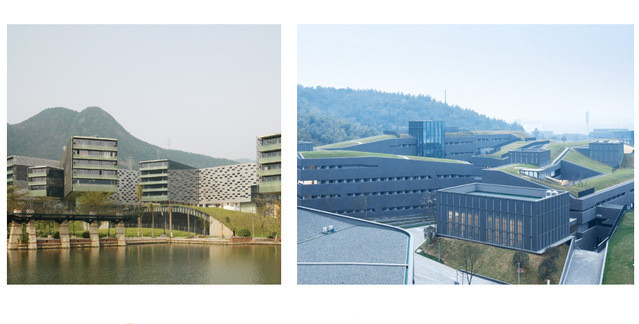 谈到建筑设计时,张教授从总体设计、单体设计两个角度作了介绍。在建筑设计上,首先考虑怎么充分利用自然景观的资源,但同时希望在建筑的形象上还要赋予科技的元素,用新技术甚至用一些新材料表达出来,体现共享科学技术的精神。在多层建筑设计上,基本理念是把观景和创造景观作为建筑设计的一条主线。在建筑材料的选择上,融入科技精神,既考虑科技,也体现自然,“因此在建筑外墙材料上,我们力求更精细的现代工业品质,结合宜宾当地的日照和气候条件,以灰白色作为主要色调,选取了空心玻璃砖、丝网印刷玻璃、浅灰色印花预制水泥纤维压力板作为主要外墙材料。”二期的规划设计方案中教学实验楼的外立面设计就着重突出了“现代工艺感”,外墙的印花图案设计就取自宜宾市树“油樟叶”。