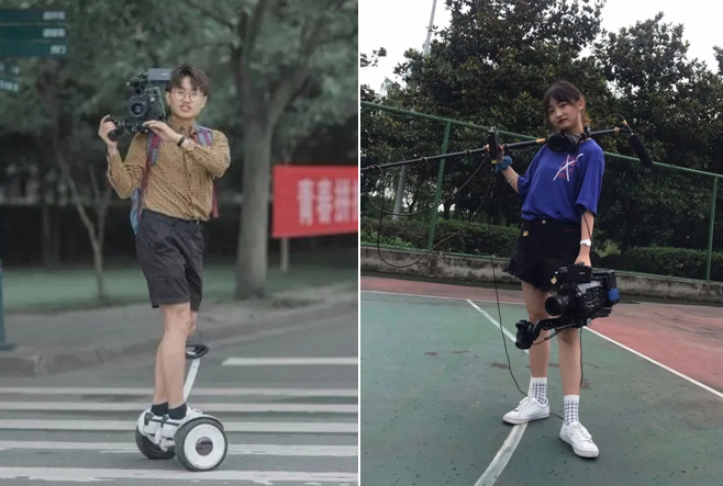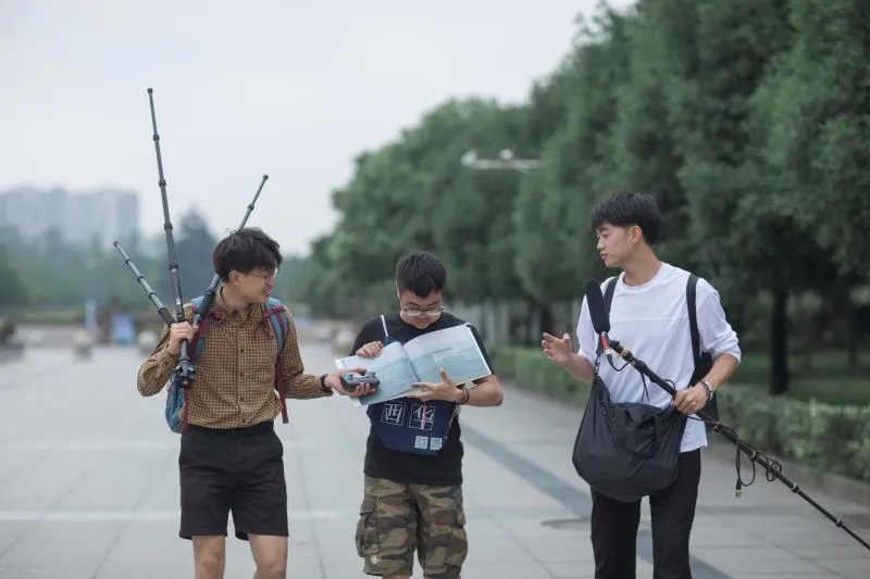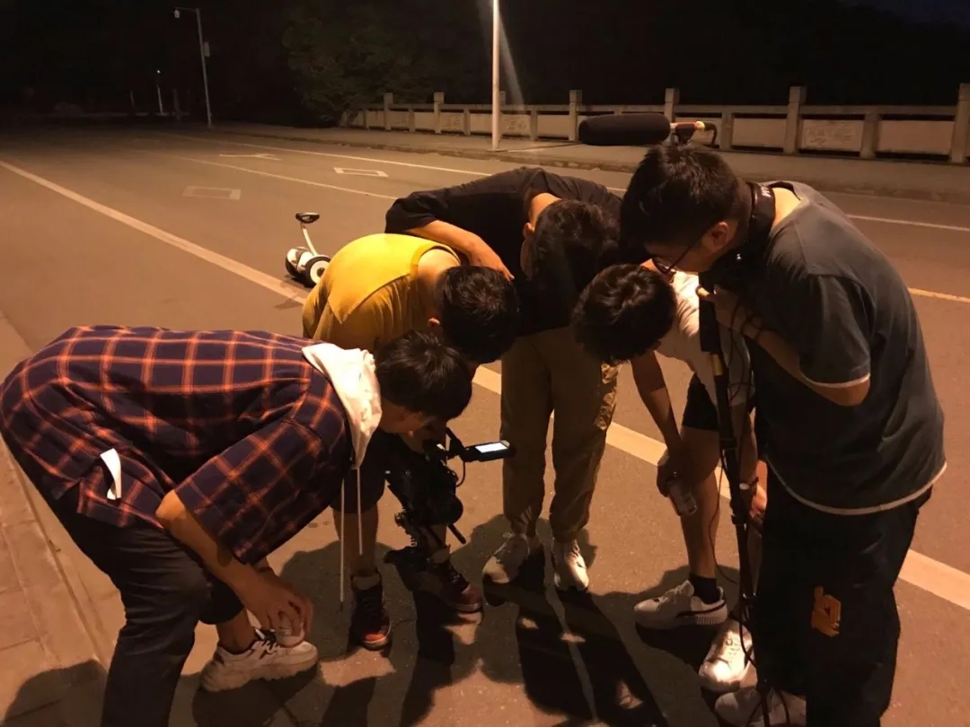 平衡车、摄像机、灯光、相机……各种道具齐上阵,团队成员运用自己在大学时期所学的专业知识,发挥自身的优势来解决难题。张渊亭说:“每晚十一点左右结束拍摄后,大家还会花一两个小时讨论第二天的拍摄剧情。”