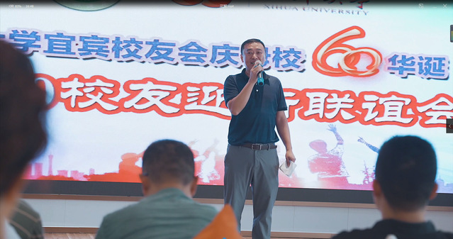 宜宾校区管委会办公室综合科科长熊必刚受刚结束会议正从本部赶来的陆跃文副书记嘱托,向校友们送上了诚挚的问候和美好的祝福,并向对学校的发展建设给与关心、支持的校友们表达感谢。他向校友们介绍了宜宾校区的建设与发展情况,宜宾校区目前已有材料、汽车、电气等9个学院共23个专业,今年9月新生开学后宜宾校区将有近5000名学生,明年,宜宾校区第一批近2000名毕业学子将走向社会、寻求工作岗位,他在热情邀请校友们参观宜宾校区、为学弟学妹们传经送宝的同时,也呼吁校友们继续关心支持母校,积极来校招聘学弟学妹。