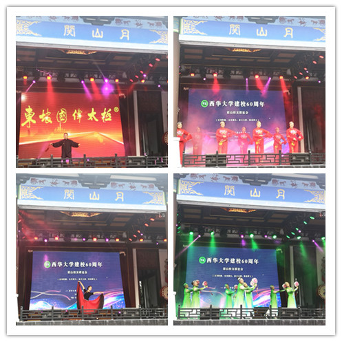 下午,在止戈文化国际交流中心关山月戏楼,与会人员一行欣赏了白朝平会长为大家精心准备的文艺节目。其中,有东坡国伟太极团队精英、中国武术协会会员周朝荣为大家带来的武当剑表演;洪雅乐舞舞蹈队为大家带来的舞蹈表演《红红的日子》《桃花渡》和独舞《抚裙》;最后,东坡国伟太极创始人、止戈武学文化研究会副会长徐国伟为大家带来了杨氏太极拳表演。时而高亢热烈的群舞、时而清幽婉转的独舞,动作如行云流水、身形如若水蛟龙的舞剑和太极拳表演,精彩的节目让在座的老师和校友们都纷纷鼓掌喝彩。最后,与会校友们共同录制了母校建校六十周年祝福视频,联谊会圆满结束。