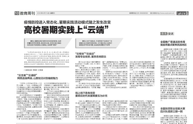 《四川日报》报道我校暑期“三下乡” 社会实践活动