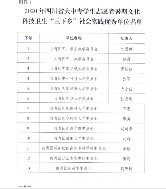 近日,四川省“三下乡”社会实践活动评选表彰结果公布,我校荣获四川省大中专学生志愿者暑期文化科技卫生“三下乡”社会实践优秀单位荣誉称号,机械工程学院助力脱贫攻坚专题实践调研团荣获社会实践优秀团队荣誉称号。全省共11所高校、18支实践团队获得表彰。
