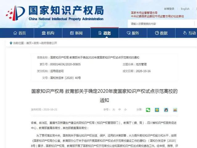 近日,国家知识产权局、教育部公布了2020年度国家知识产权试点示范高校名单(国知发运字〔2020〕40号),西华大学成功入选国家知识产权试点高校名单。