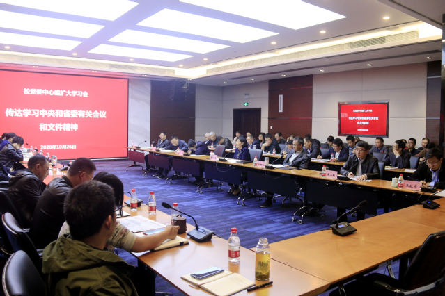 10月26日下午,学校在办公楼101会议室召开了校党委中心组(扩大)学习会,传达学习全省高校党委书记、校(院)长思想政治建设与能力素质提升读书班暨全省高校党的建设工作会议精神,深入学习中央、省委关于意识形态工作的重要文件和决策部署,认真学习中共中央、国务院印发的《深化新时代教育评价改革总体方案》,研究部署学校贯彻落实举措。校党委书记边慧敏主持学习会。校领导,机关及业务部门主要负责人,各学院党委(党总支)书记、院长参加了会议。