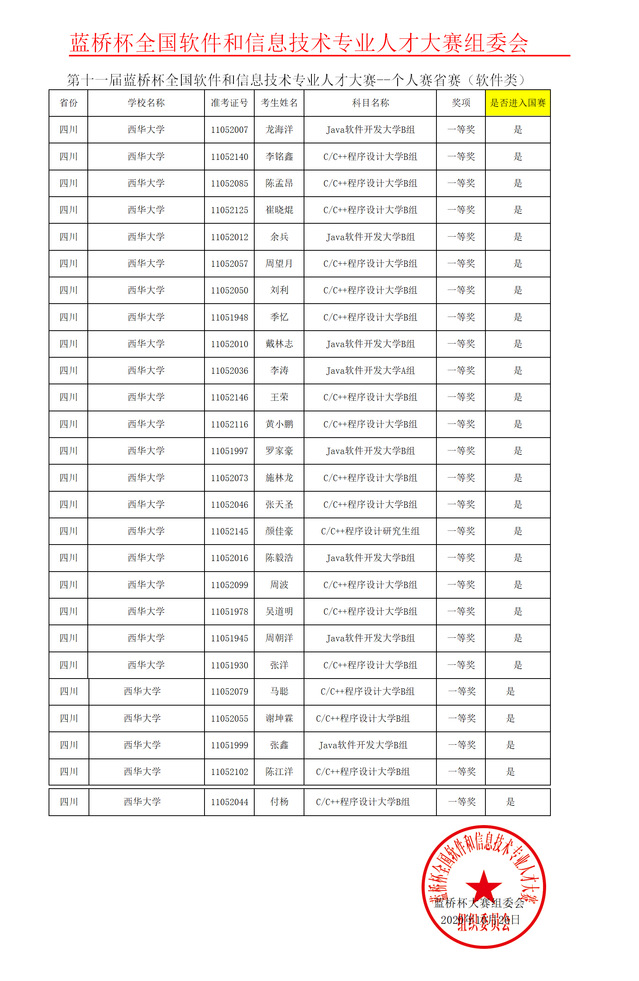 我校周立章、谭平、夏梅宸、于春、唐剑梅、陈晓军、李颖、李兵、王敏、陈克力、罗晓晖等老师组成指导小组,克服疫情带来的困难,将线下集中培训和个别辅导变为线上算法练习、线上辅导、线上竞赛仿真模拟测试等形式,所指导的研究生和本科生参加了两个大项所有科目的竞赛。其中,软件类中颜佳豪同学获得研究生组一等奖、龙海洋等8位同学获得Java软件开发一等奖、张天圣等17位同学获得C/C++程序设计一等奖、向博等56位同学获得二等奖、赵潇然等34位同学获得三等奖,电子类中毕光彦等4位同学获得二等奖、孙诗佩等3位同学获得三等奖。获得软件类一等奖的26名同学将代表学校参加11月14日举行的第十一届全国软件和信息技术专业人才大赛全国总决赛。目前,赛前动员和集中培训正在紧张进行中。
