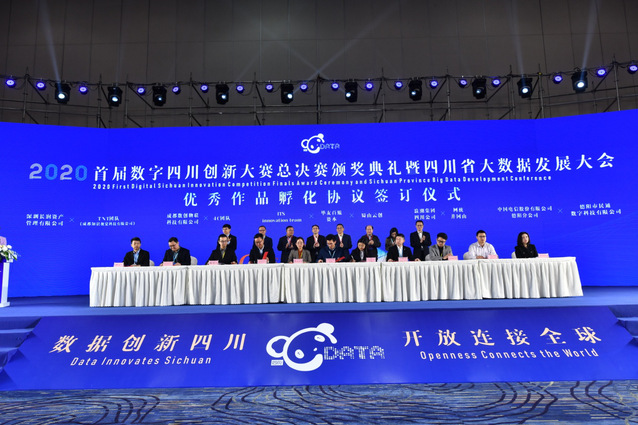 颁奖典礼上,四川省人民政府副秘书长、四川省人民政府办公厅主任陈彦夫为获奖团队颁发了奖杯。投资方发言代表在大会上从“设计理念”、“技术体系”、“行业沉淀”三个方面高度评价了团队作品,并签署了“优秀作品孵化协议”。