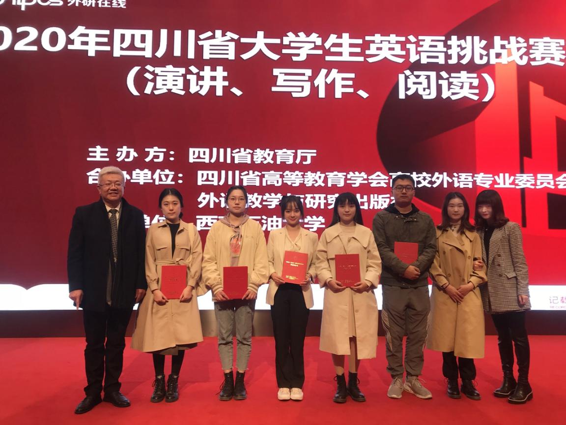 我校参赛选手在赛场上表现突出,思维敏捷、从容不迫,展现出了西华学子的风采。2018级英语专业学生王艳阳以全省第二名的好成绩斩获演讲比赛一等奖,刷新了我校在此项比赛中获得的最佳成绩,将代表四川省征战全国总决赛。西华学院2017级工商管理专业何可获演讲比赛二等奖,外国语学院2018级英语专业王栋冉获阅读比赛二等奖;西华学院2018级机械设计制造及其自动化专业易佳玲同学获阅读比赛三等奖,外国语学院2018级英语专业万谦获写作比赛三等奖;知识产权学院、法学院2019级法学专业陈志会获写作优胜奖。