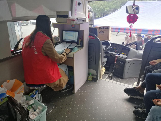 活动现场,工作人员严格按照疫情防控要求,规范、有序、高效地进行信息登记、咨询体检、初筛化验和静脉采血等工作。活动现场分为五个区域:资料填写区、信息录入区、验血区、登记区、领证区。