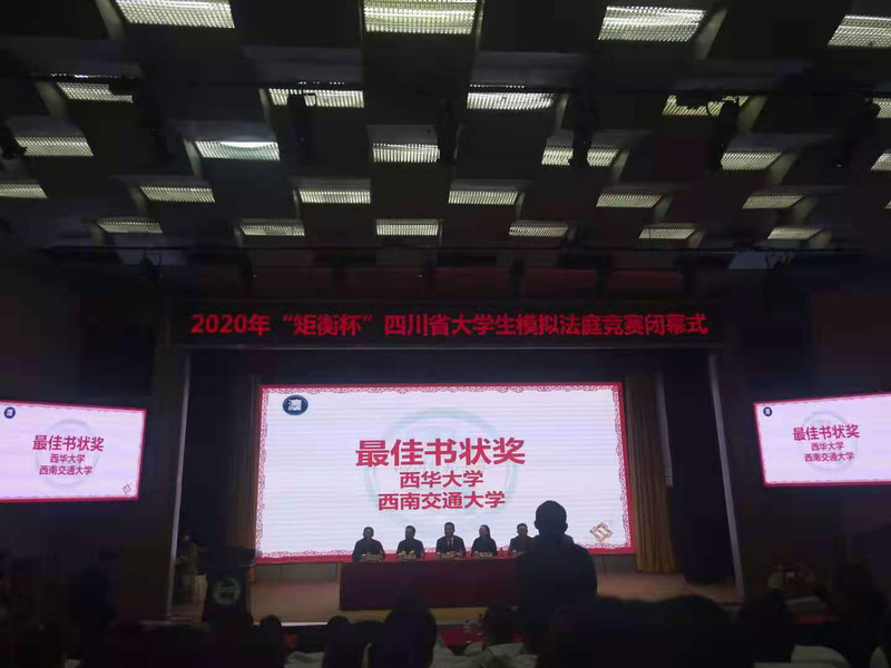 11月14日,我校代表队与四川师范大学、西南医科大学两只代表队进行了激烈的较量。通过此次比赛,我校代表队展示了风采,增长了见识,经四川省高级人民法院六名资深法官的匿名评审,西华大学模拟法庭代表队以1048分获书状比赛第一名,高出第二名43分,荣获“最佳书状奖”荣誉称号。