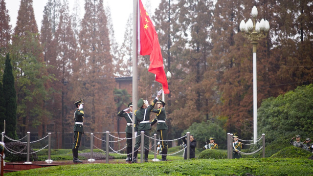早上9:00,师生们在明德广场举行了热烈而庄严的升国旗仪式,伴随着激昂国歌响起,国旗护卫队将鲜艳的五星红旗缓缓升起。在场的全体师生齐齐向冉冉升起的国旗行注目礼,爱国热情在升旗仪式中点燃。在学生代表郑钧元同学的带领下,大家面对飘扬的五星红旗,进行了庄严的爱国宣誓。在同学们庄严嘹亮的誓词过后,学生代表为师生们朗诵了《今天,我们这样爱国》,诵读出了西华学子爱党爱国的心声,也诵读出了新时代新青年的责任与担当。