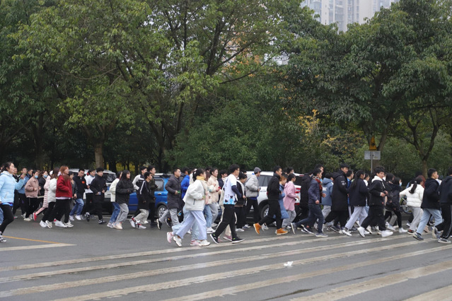 冬季长跑开始前,校团委周雪莲老师为大家讲解了活动流程及注意事项,活动参与人员在长跑之前和工作人员一起进行了热身运动。随后,充满青春气息的爱国长跑正式开始。虽然寒风凛冽,但依然挡不住师生们高涨的热情,大家在相关工作人员的指引下,按照指定路线开始奔跑。长跑过程中同学们始终保持着整齐的队伍,整个长跑过程井然有序。
