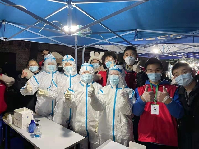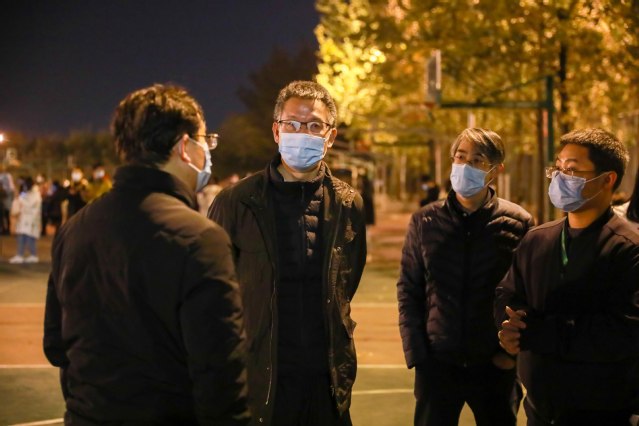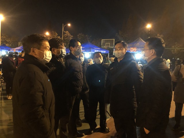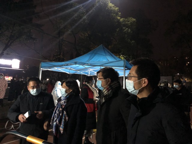 深夜时分,学校领导来到现场查看情况,对点位分布、隔离距离、条件保障等进行指导,对一线工作人员进行慰问。