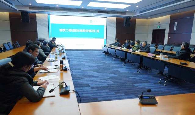 会上,发展规划处处长张力从地铁二号线延长线的线网布局、实施步骤、规划情况、项目联动、影响因素、建设目标、工作建议等方面汇报了学校对接地铁二号线延长线规划的有关情况。
