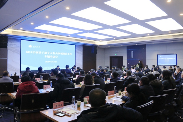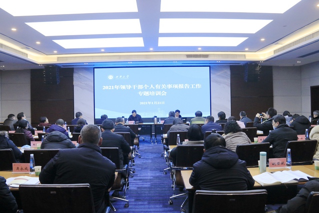 为高质量做好2021年个人事项报告工作,进一步提高查核一致率,发挥领导干部个人有关事项报告制度在推进全面从严治党和从严管理监督干部中的作用,1月21日下午,学校在办公楼101会议室召开2021年领导干部个人有关事项报告工作专题培训会。学校党委邀请省委组织部干部个人事项查核处处长杨长君作专题培训,在校的学校领导班子成员,集中填报范围的中层领导干部参加培训会。会议由校党委书记余孝其主持。