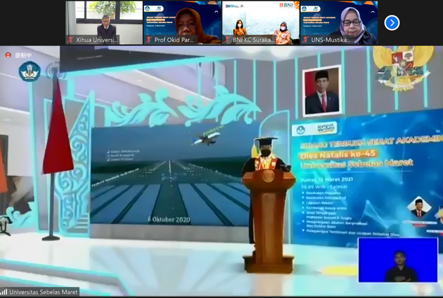 3月12日上午9点,校长刘树根受邀参加印尼三一一大学45周年校庆线上开幕式,并代表西华大学在视频中为三一一大学献上祝福。
