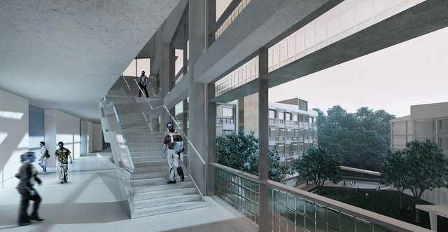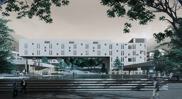 据悉,西华大学宜宾校区二期是由国际著名建筑师、麻省理工学院建筑系前系主任张永和教授主持设计,设计以“智慧校园、创新校园、文旅校园、生态校园”为指导思想,融汇世界之窗、智慧之眼、生态之根、人文之魂的创意,展现西华历史文化之美、特色教育之美、使命担当之美和师生成长之美。宜宾校区二期的设计坚持“以人为本”,是一个风雨无阻的校园。设计的建筑用架空风雨连廊串联,能够遮风避雨、遮挡太阳。无论何时,师生们都可以漫步校园。学校设计与周围的自然景观融为一体。在多层建筑设计上,基本理念是把观景和创造景观作为建筑设计的一条主线。在建筑材料的选择上,融入科技精神,既考虑现代化,也体现自然。选择建筑外墙材料时,结合宜宾当地的日照和气候条件,以灰白色作为主色调,选取了空心玻璃砖、丝网印刷玻璃、浅灰色印花预制水泥纤维压力板作为主要外墙材料。例如,教学实验楼的外立面的印花图案设计就取自宜宾市树“油樟叶”。