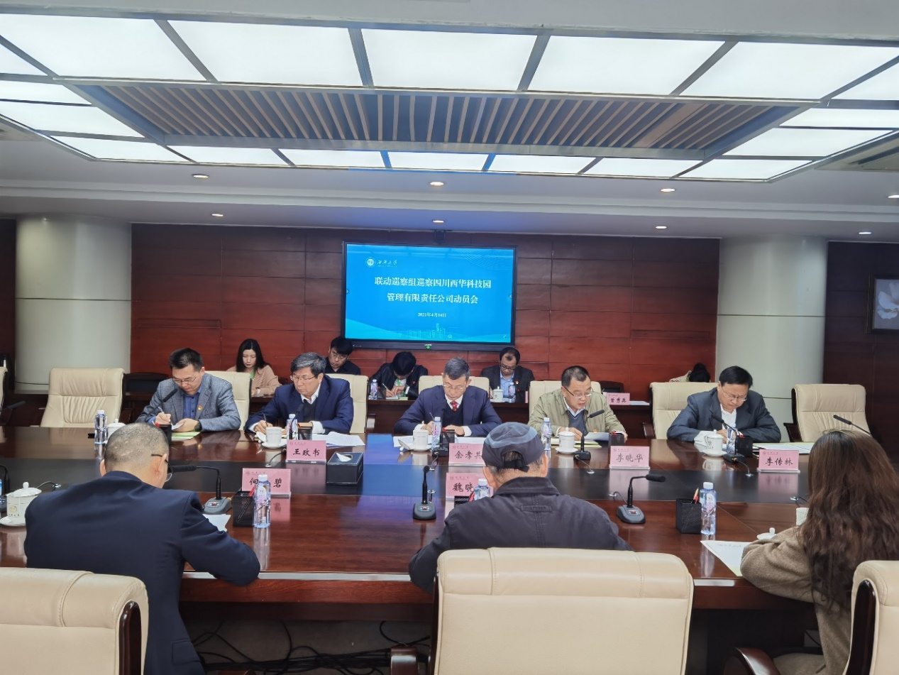 党委巡察办公室负责人,联动巡察组组长以及联动巡察组和四川西华科技园管理有限责任公司全体成员参加会议;四川西华科技园管理有限责任公司总经理何太碧主持会议并作表态发言。