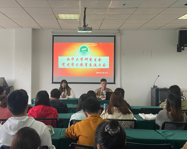 3月31日,西华大学研究生会在学生活动中心开展了主题为“重温辉煌党史,践行初心使命”的首场党史学习交流分享会。研究生会主席团成员、各部门干部及干事,第二课堂成绩单成员共计50余人参会。
