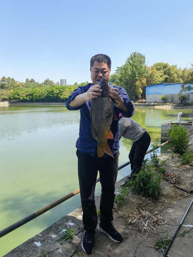 当天天气晴朗,阳光微燥,春风和煦。只见一柄柄鱼竿轻灵地甩出,在水面划出小小的涟漪。老师们为取得好成绩,全神贯注紧盯鱼漂,不放过任何的咬钩讯号。不一会,只见得一柄鱼竿顶端下沉,浮标微微晃动,一条大鱼破水而出,是机关分工会的胡治帆老师率先得手,一条三两重的小鲫鱼轻松收入娄中。其余钓友也紧随其后,时不时就有鱼儿拍打水花的欢乐声传来,引发现场高潮的是机关分工会的女钓手曹德娟老师,她竟然钓起了一条六斤多的大鲤鱼,让现场钓者羡慕不已;而土木建筑与环境学院分工会的顾鸿飞老师则以频频提竿的小鲫鱼数量博得大家称赞。眼看着一条条鲜活的鱼儿被收进鱼护,赞赏声、欢呼声此起彼伏。钓者、观者共享其乐,欢笑声萦绕在湖畔,钓鱼比赛的乐趣一览无余。