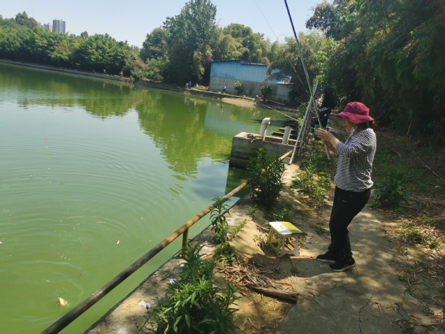 当天中午,满载着参与活动的教职工车辆准时发车,驶向活动现场。下午,钓鱼活动正式拉开大幕。选手们迫不急待地来到了自己选择的钓位上,他们中有经验丰富、动作娴熟的钓鱼老手,也有初涉钓界的“小白”。静谧的湖边,挂饵、抛竿、观漂、提竿,老师们各显身手,忙得不亦乐乎。