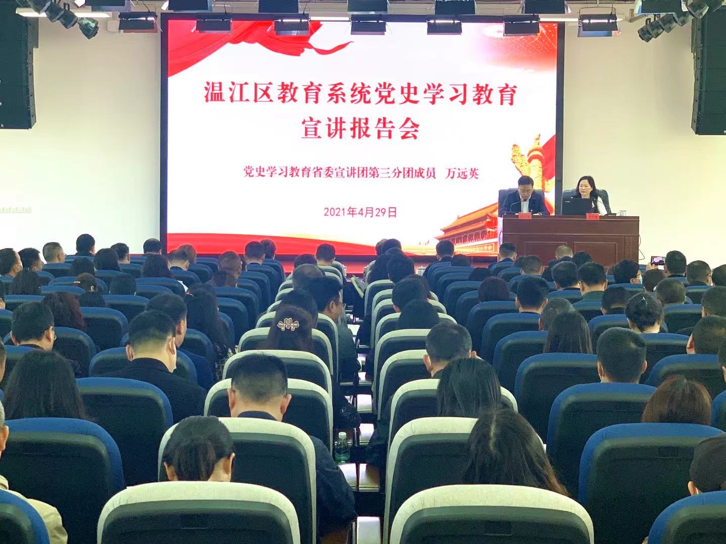 宣讲会上,万远英主要围绕习近平总书记在党史学习教育动员大会上的讲话,深刻阐释了在全党开展党史学习教育的重大意义,系统回顾了百年来我们党团结带领人民走过的光辉历程和取得的历史性成就。同时,万远英紧密结合四川成都温江教育系统工作实际,就如何加强党史学习教育提出了指导性、针对性的宝贵意见。宣讲报告视野开阔、权威准确、全面系统、契合实际,为推动中央、省委、市委、区委重大决策部署在温江教育系统落地生根,为加快建设践行新发展理念的工业城市示范先行区,全面建设社会主义现代化新温江,都具有十分重要的指导意义。