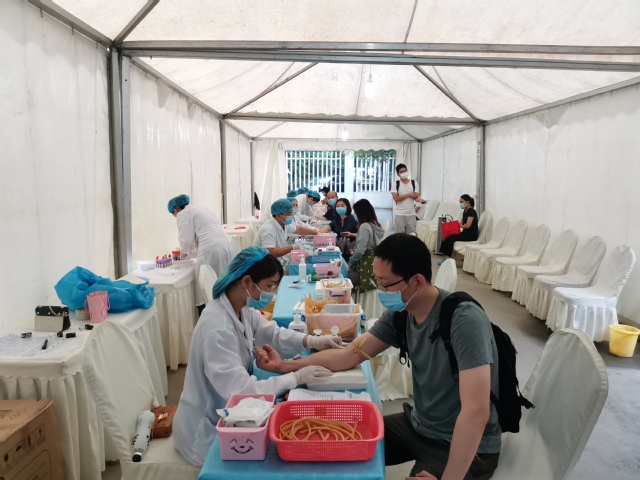 本次体检由四川省人民医院体检中心北区分部体检人员自带医疗设备来校进行体检工作。体检项目包含血检(血常规、肝功、肾功、血脂、糖化血红蛋白<40岁以上>、甲状腺功能<40岁以上>)、内外妇科、腹部彩超、泌尿系彩超、乳腺彩超(女)、甲状腺彩超<40岁以上>、粪便隐血<40岁以上>、胸部CT<40岁以上>等项目,且提供了乙肝两对半肿瘤标志物等20余项自费项目供教职工根据自身情况进行自行选择。今年体检中学校考虑到当前WHO公布的肿瘤发病率及我校教职工的实际情况,经与省人民医院多次沟通、协调,克服场地、供电等困难,特意为40岁以上教职工增加了目前早期肠癌筛选方法——粪便隐血试验检查,并仍保留了肺癌筛选检查——移动低剂量胸部CT检查。还考虑到近年来甲状腺疾病、糖尿病患病人数增多,特意为40岁以上教职工增加了甲状腺功能、糖化血红蛋白的检查。