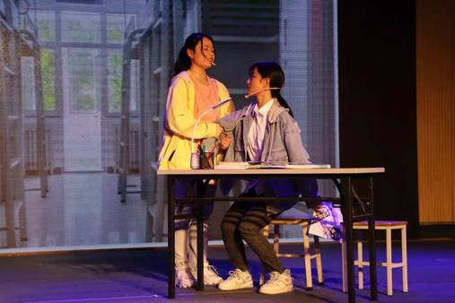 我校心理剧作品《心灵辩论队》主要反映有社交焦虑障碍的女孩徐小倩,如何在一个阴差阳错的情况下参与辩论队,并一步步面对和克服自己内心的恐惧和担忧,获得成长的故事。本剧的编排,在心理健康服务与研究中心相关指导教师的指导下,由大学生心理健康服务联合会组织,在全校范围内招募编剧、导演、演员等,由学生自主创作、排练完成,历时4个多月。