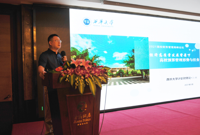 江林对学校进行了简要介绍后,以“经济高质量发展背景下高校预算管理形势与任务”为题,结合我校实际以“明时代、顺大势、承大任”为关键词作了专题演讲。演讲立足高校预算管理面临“过紧日子”的挑战与“国家完善教育经费投入机制”的机遇,就西华大学的预算管理认识定位、强化预算绩效动因、守预算初心担预算使命、构造“共治、法治、善治”预算治理新格局、用好“现代化”手段踏上预算绩效一体化管理新征程等任务进行了分析汇报,在与会专家、同行中引起了共鸣。
